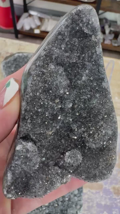 Step into the quiet power of the void with Black Amethyst, a crystal forged in Earth’s deeper fires. Rich in iron and rooted in shadow, this unique variety of amethyst holds the same spiritual clarity and intuition-enhancing energy as classic purple amethyst—but with an added intensity that works in the undercurrents of the soul.
