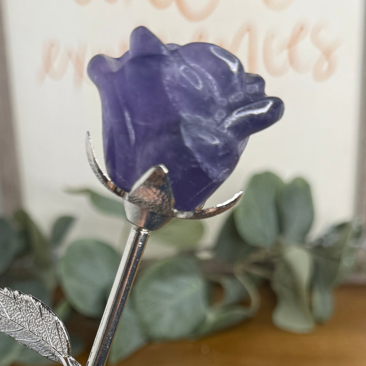 Purple Fluorite is known as the “Genius Stone” for its ability to clear brain fog, enhance decision-making, and promote deep focus—making this rose ideal for students, creatives, and intuitive practitioners. -