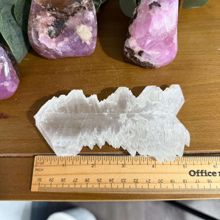 Selenite Slab — Purification • Clarity • Divine Light Size: 5 in x 3 in Ethereal and radiant, Selenite is the crystal of pure light and spiritual cleansing. These polished Selenite Slabs emit...